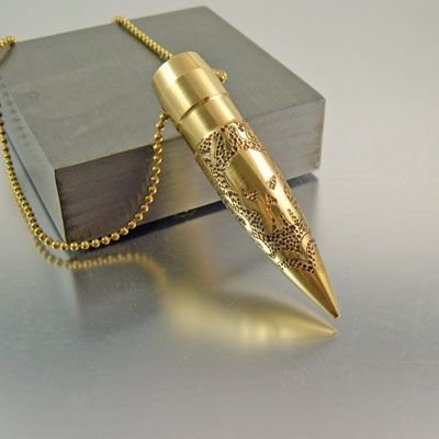 Explorez une collection de bijoux conçus à partir de douilles authentiques, métamorphoseés en pièce unique au caractère affirmé.